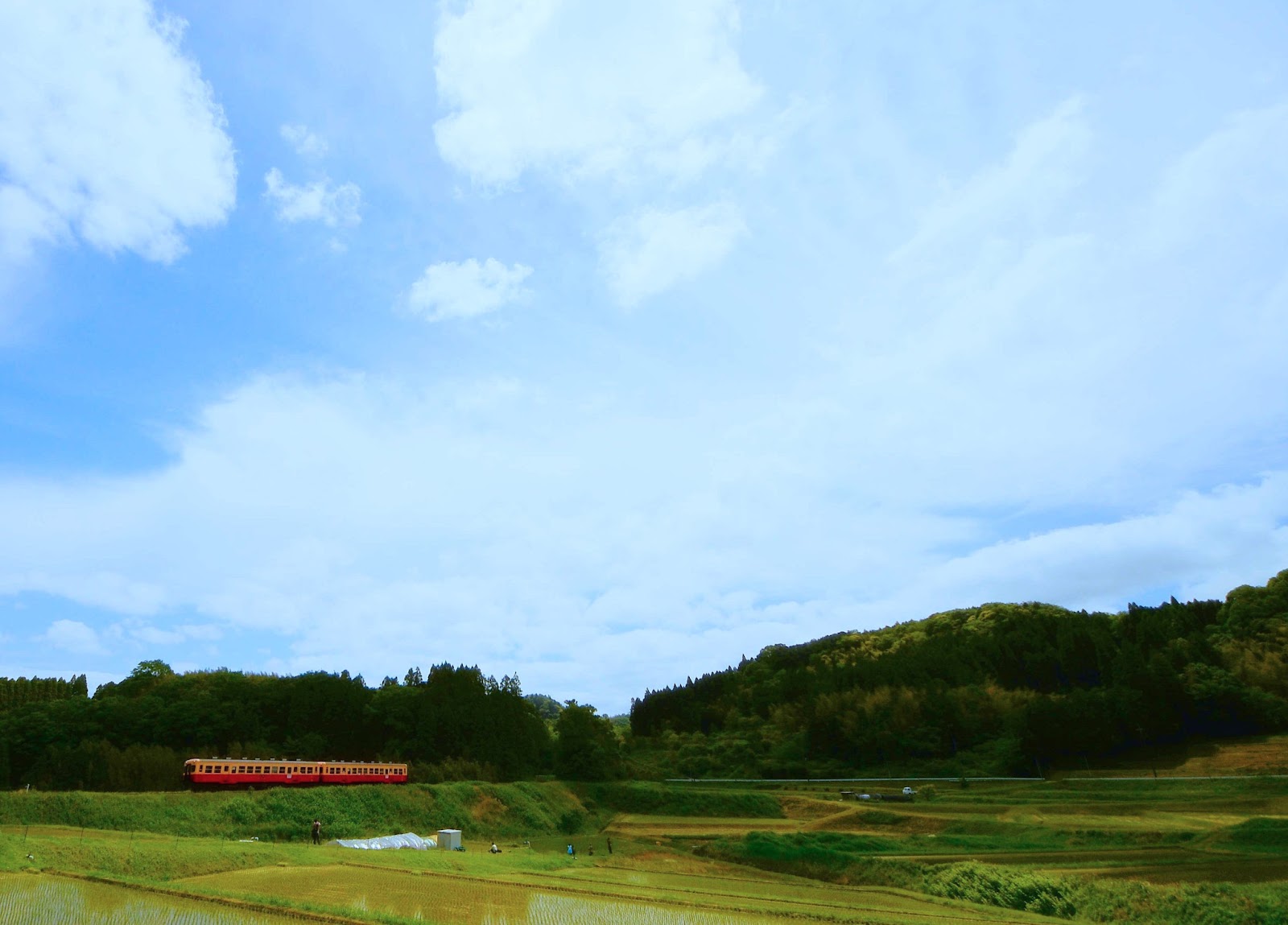ジーゼルエンジンのため架線が無く、空がスッキリ