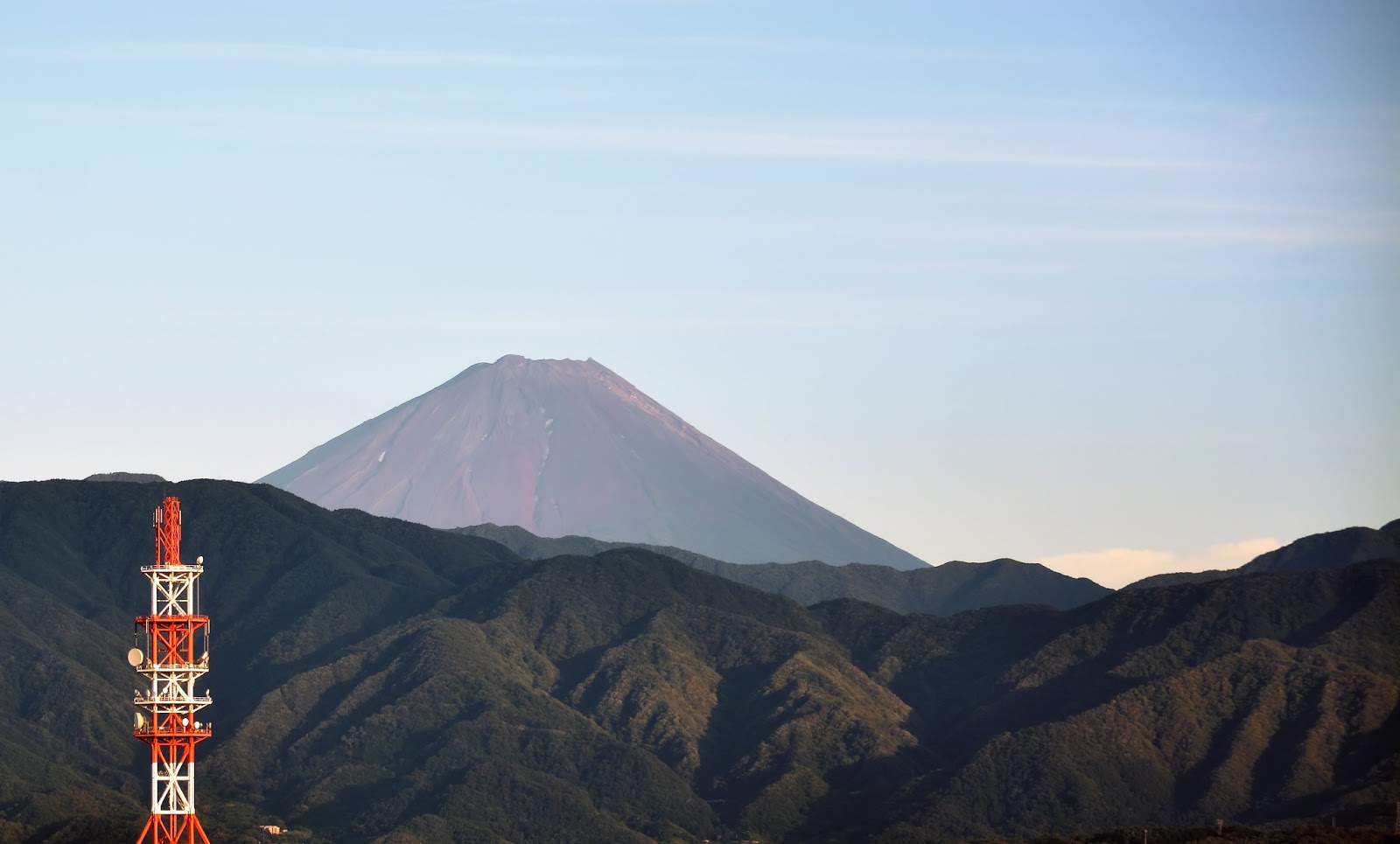 手前の山肌と富士山に当たる夕陽&鉄塔の色合いなどに大満足でした。