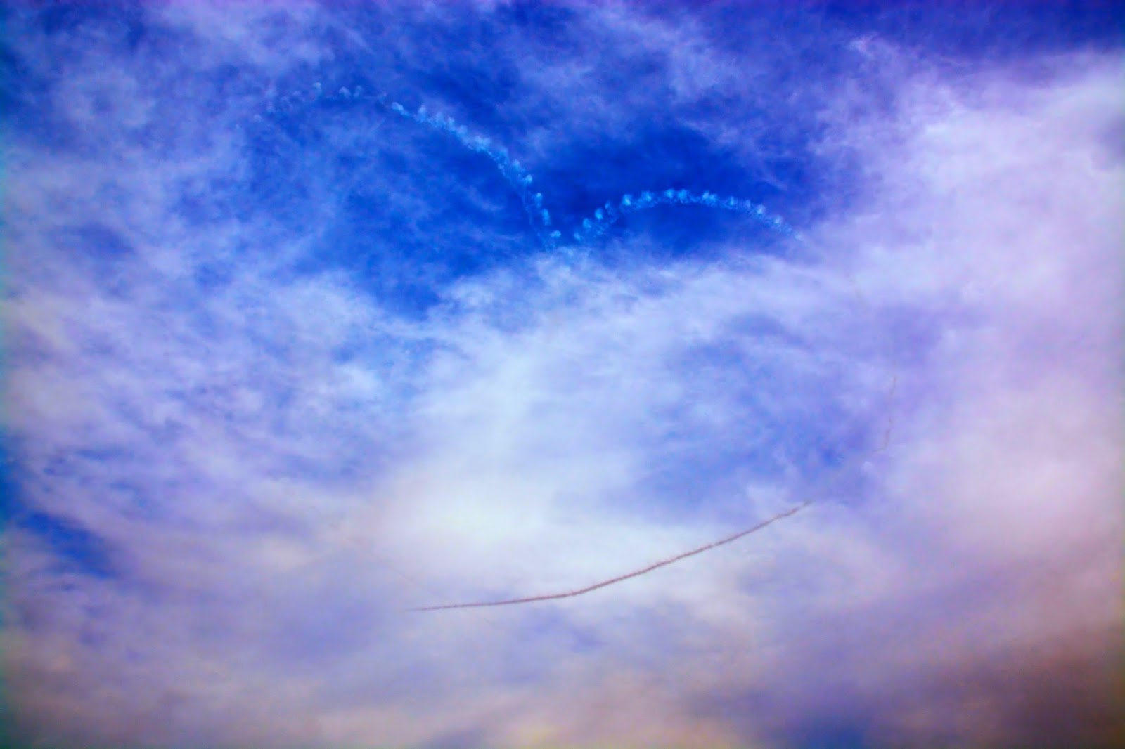 ブルーの飛行に合わせて?少し青空が出てきました。快晴だったらでっかいハートマーク映えるだろうな♪