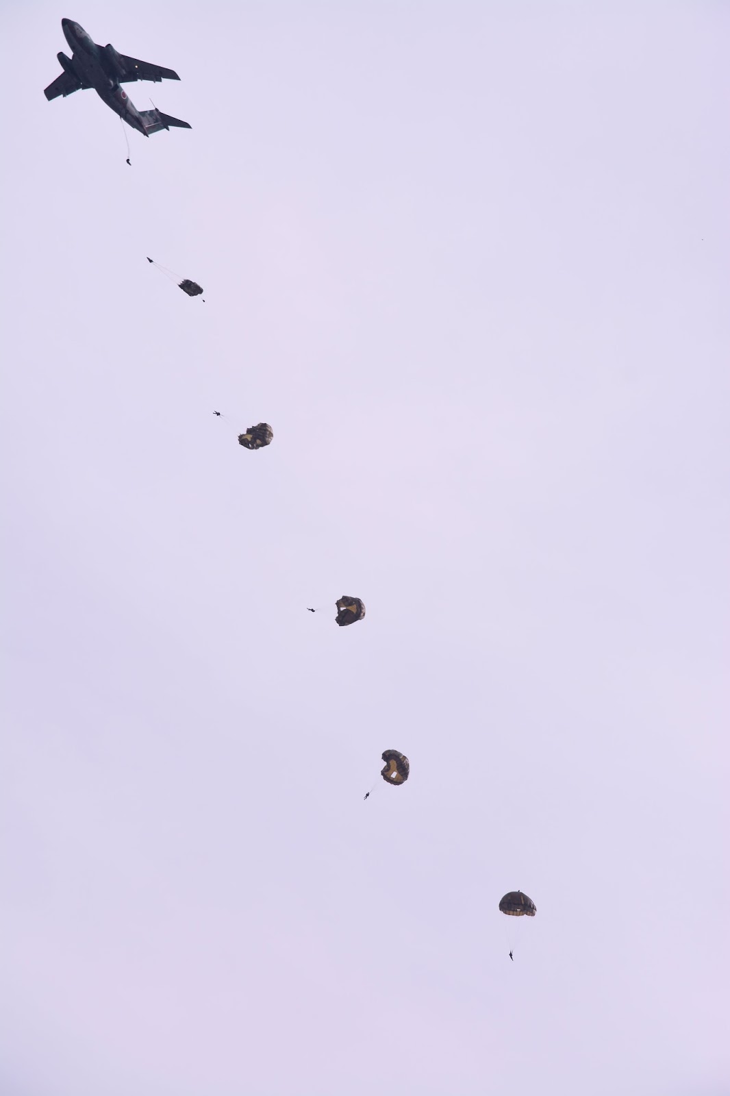 そして習志野空挺部隊のパラシュート降下!綺麗に決まっていました。
