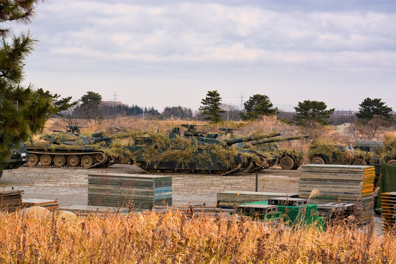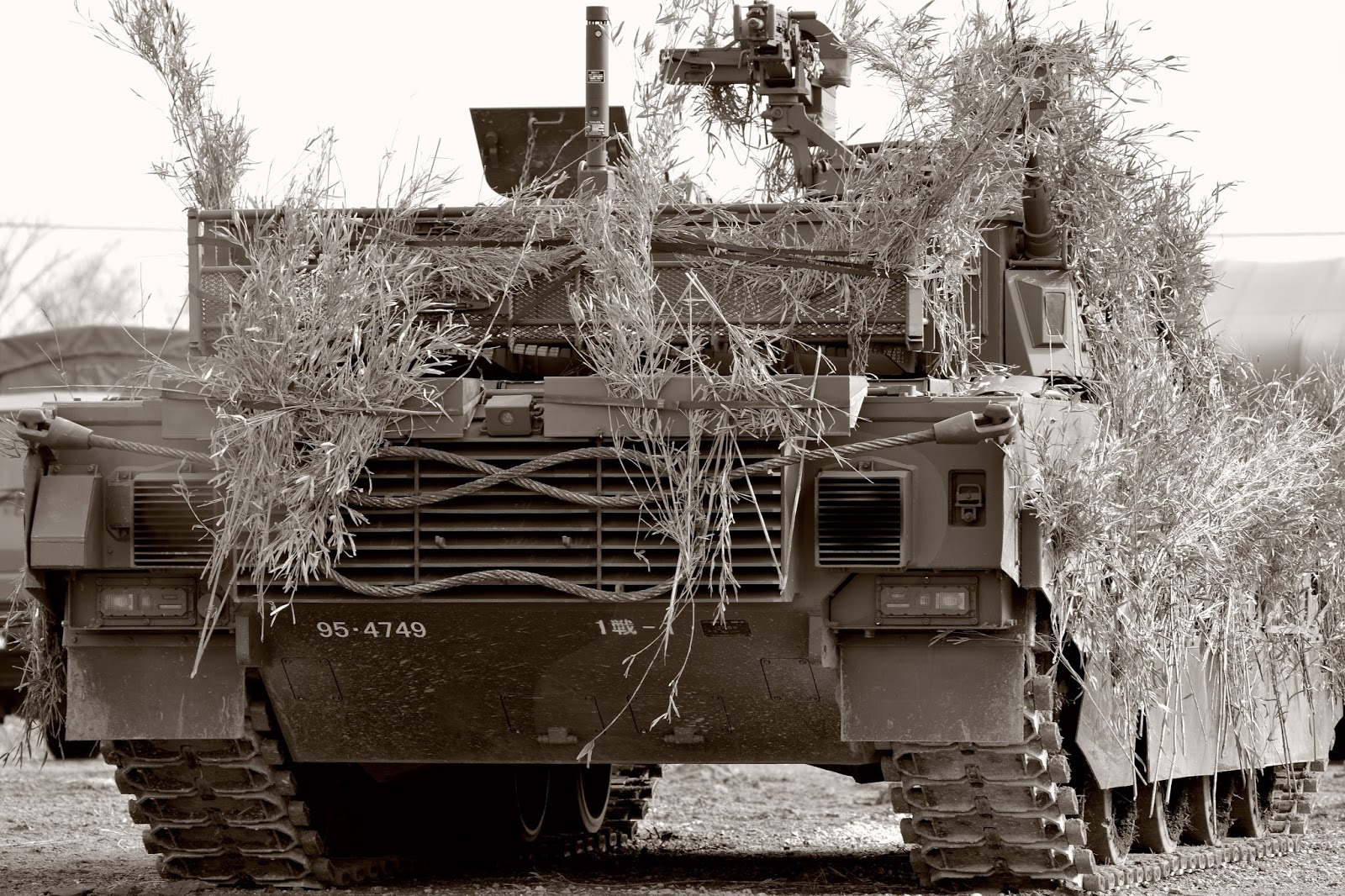 地上部隊の活躍は残念ながら見えませんでしたが、待機中の勇姿を。(バックミラーまでカモフラージュしているとは!驚きでした。