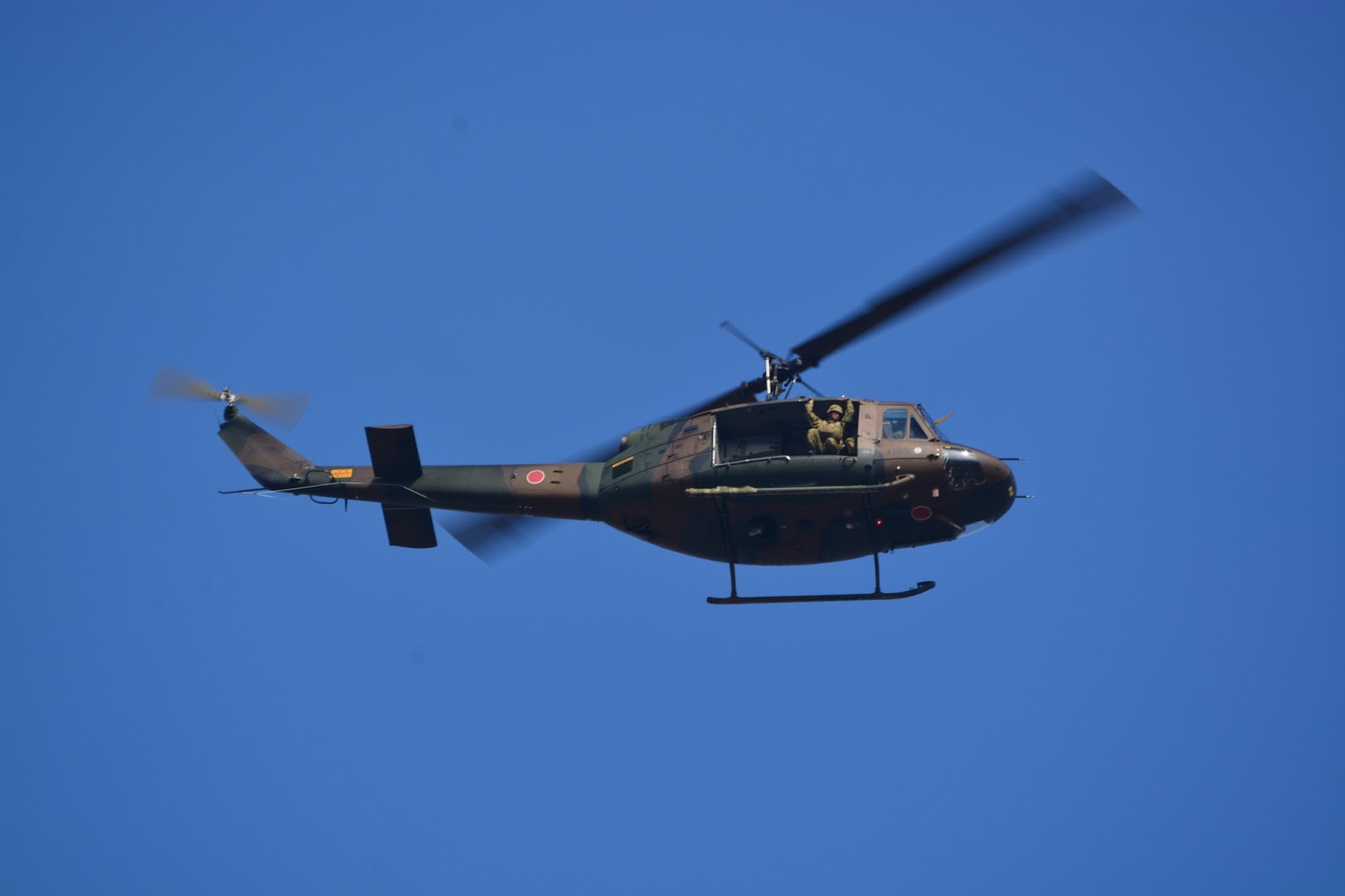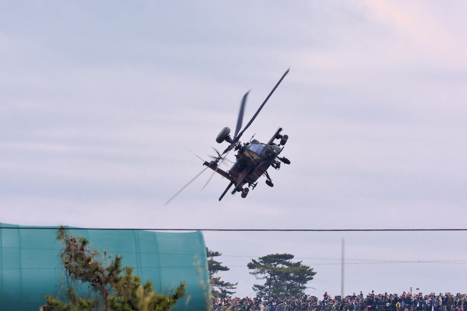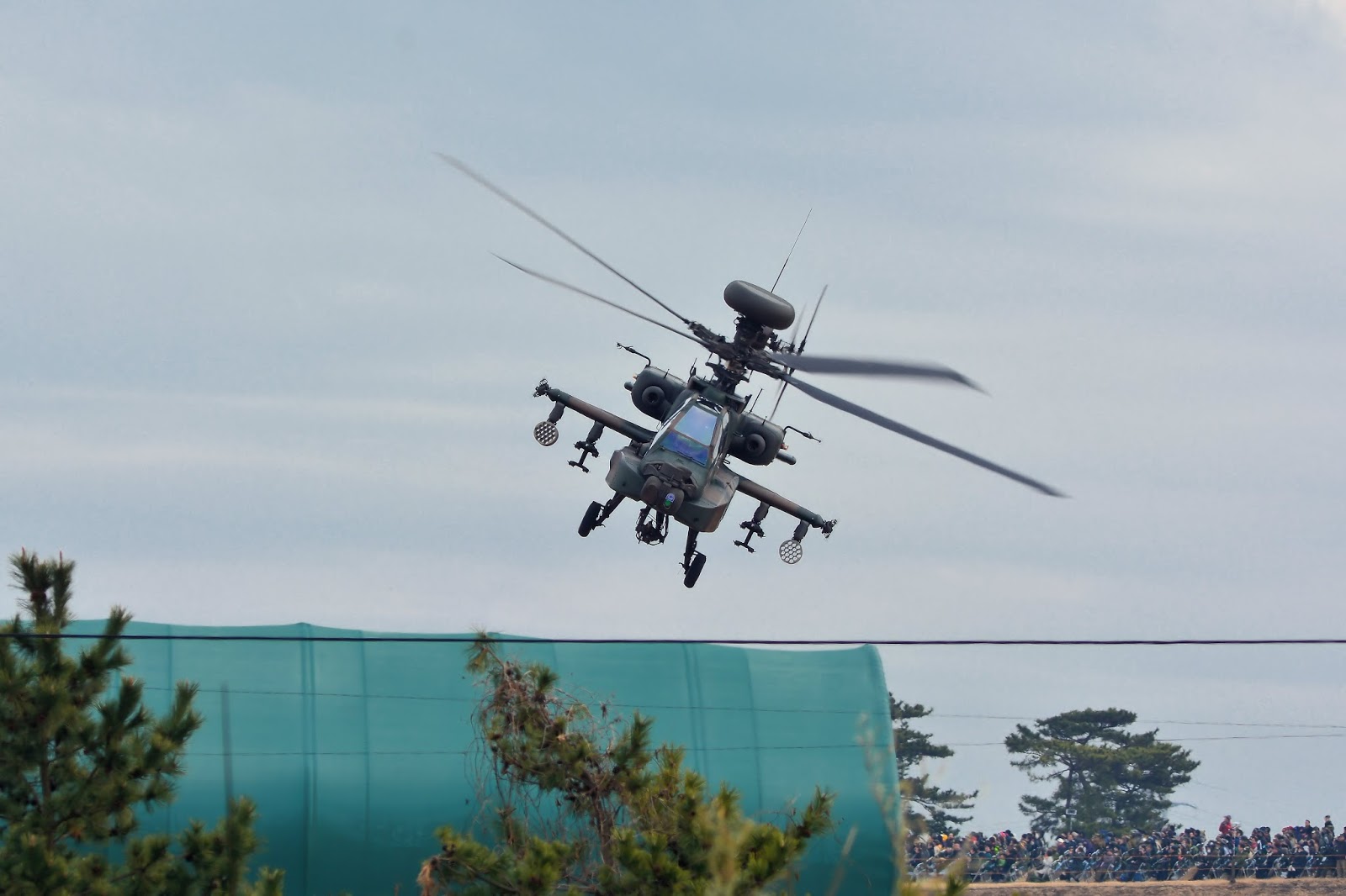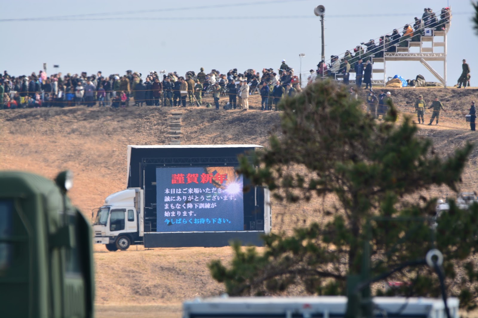 今回は会場正面ではなく、長玉主体で行こうと考えていたので、演習場内メイン会場手前の自動車教習所先に陣をとります。