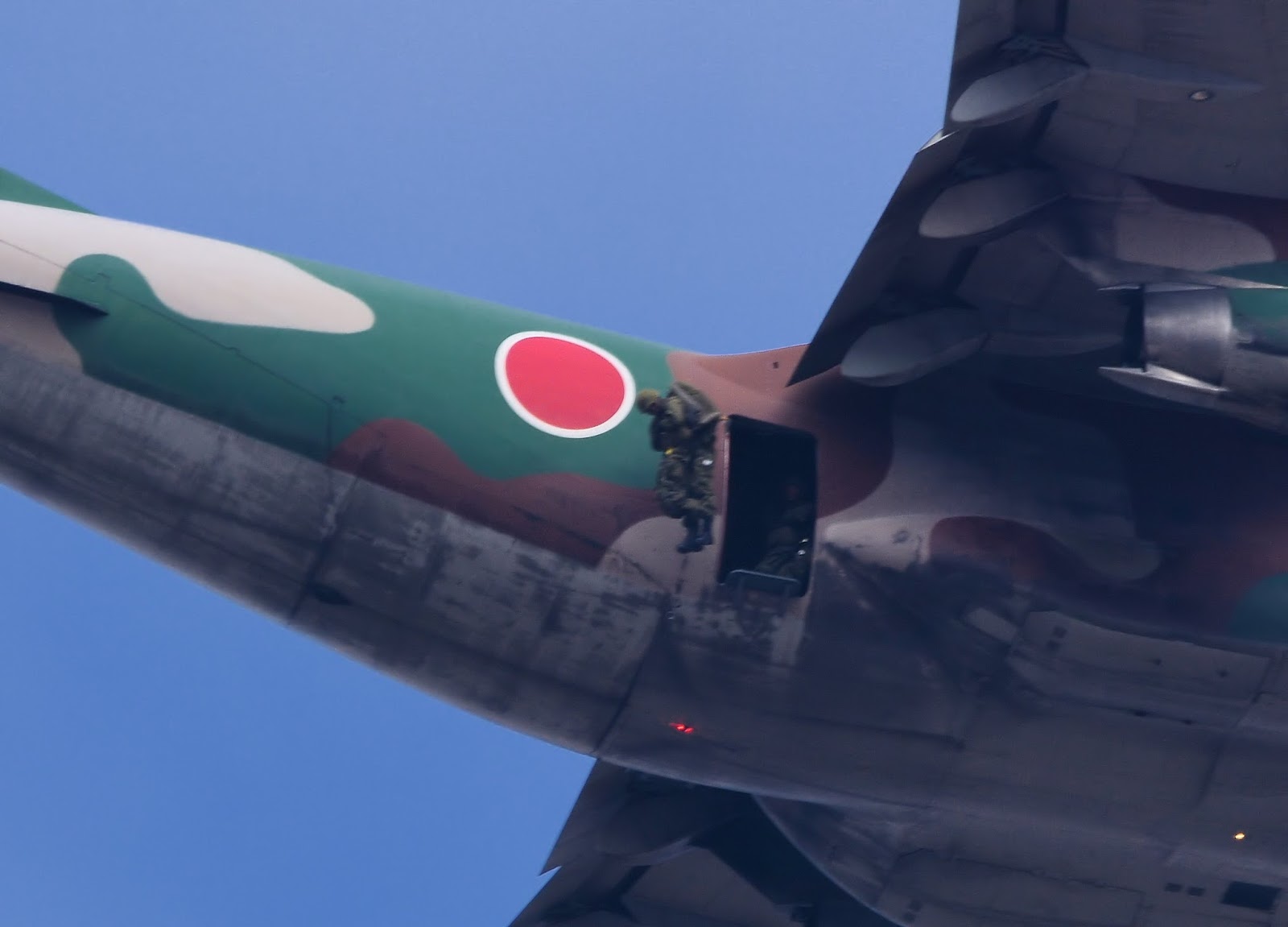 続いて輸送機からの降下。後ろのドアからや横のドアから次々とジャンプ。