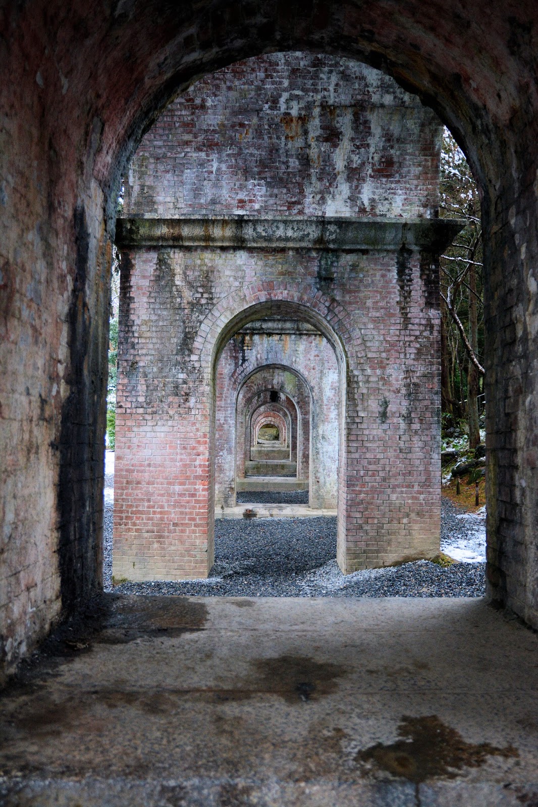 隣接する敷地にあるレンガ造りのアーチ。