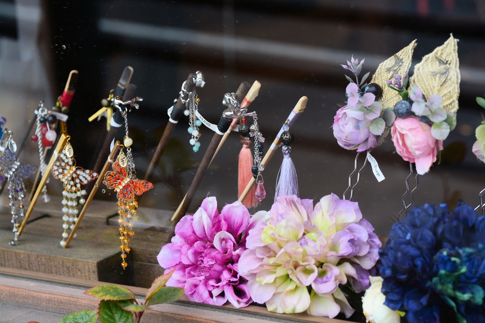 途中、こんな素敵なかんざし屋さんが。(モノ撮り難しいです・・・)