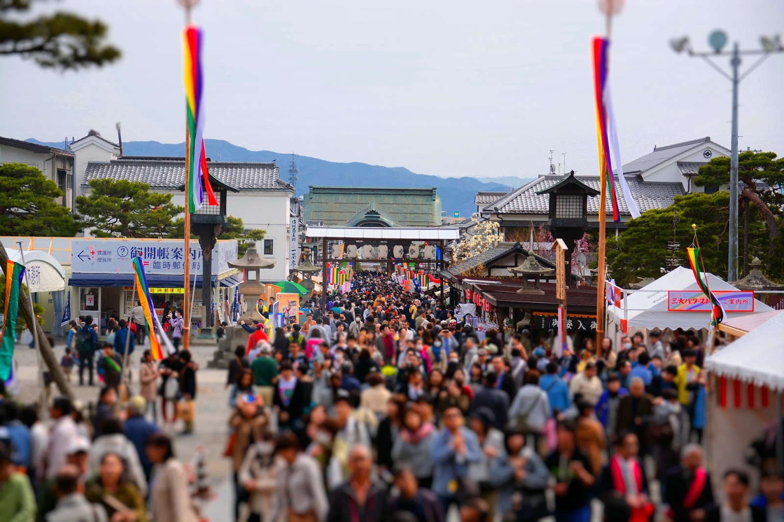 1時間に1本のバスに乗って善光寺へ。あれ?土日の日中はバスは迂回ルートでアプローチ。善光寺大門(臨時)バス停で降りると・・・人出スゲー!