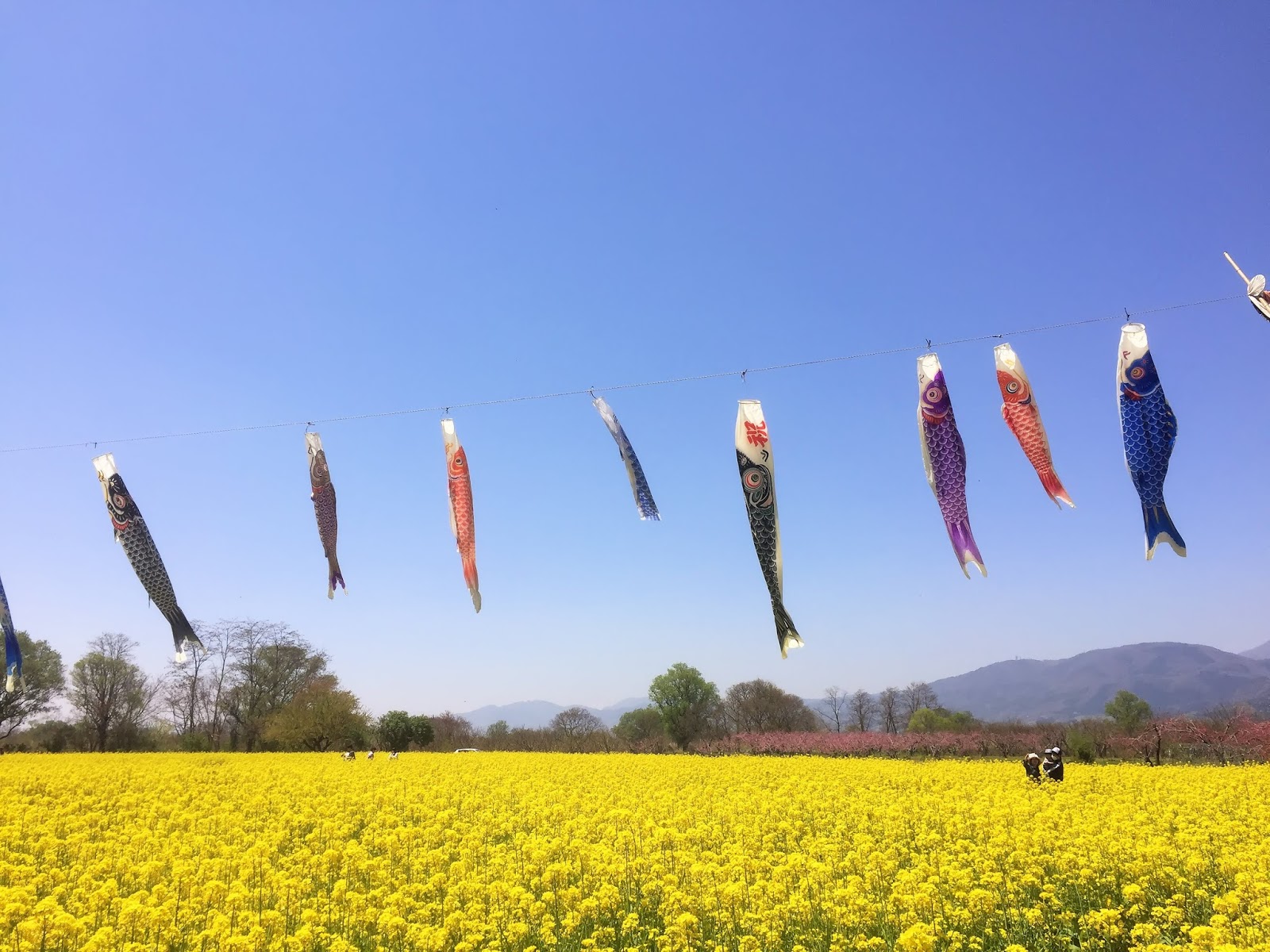 昨日、同僚と高山村からの帰り道に小布施から豊野へ渡る橋にこいのぼりが泳いでいました。河原には一面の黄色。洗濯物を干したら速攻で向かいます。