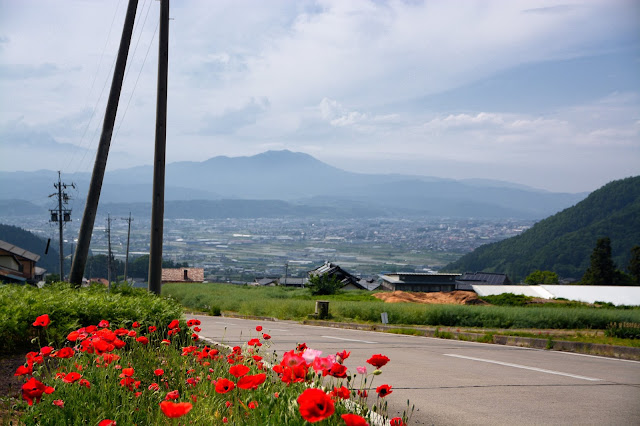 見晴らし最高!な中野市の湯。ここは以前、仕事場の旅行でキャンプに来ていたのでそれ以来の再来。こんな近いとは思いませんでした。(写真は温泉の前の道を少し降りたところでパチリ)