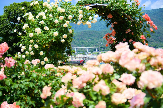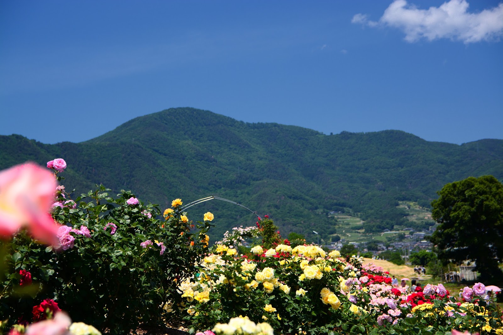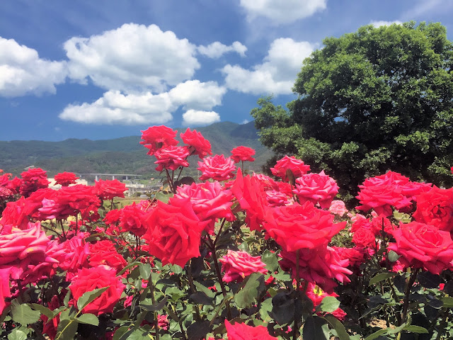 今日は長野市の南にある坂城町まで。国道18号をひたすら南下。1時間前後で到着です。町おこしでバラ園が千曲川ぞいにあって見頃とのこと。来場者もそこそこあって盛況でした。