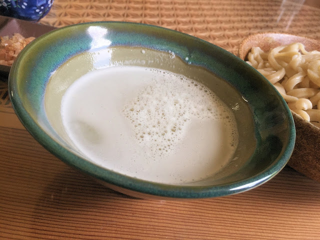 薬味で出てきた味噌を半分ほど溶かしてうどんをGo!