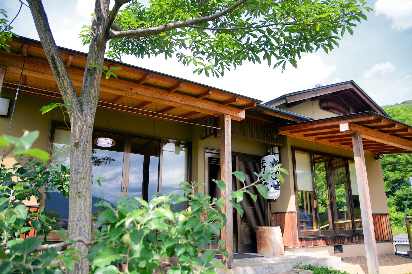 駐車場で車を止めると目の前の眺めが最高!ヤギやウサギに出迎えられて民家を改修したお店へ。名前と人数をメモに書き込みしばし待機。そしてきましたおしぼりうどん。