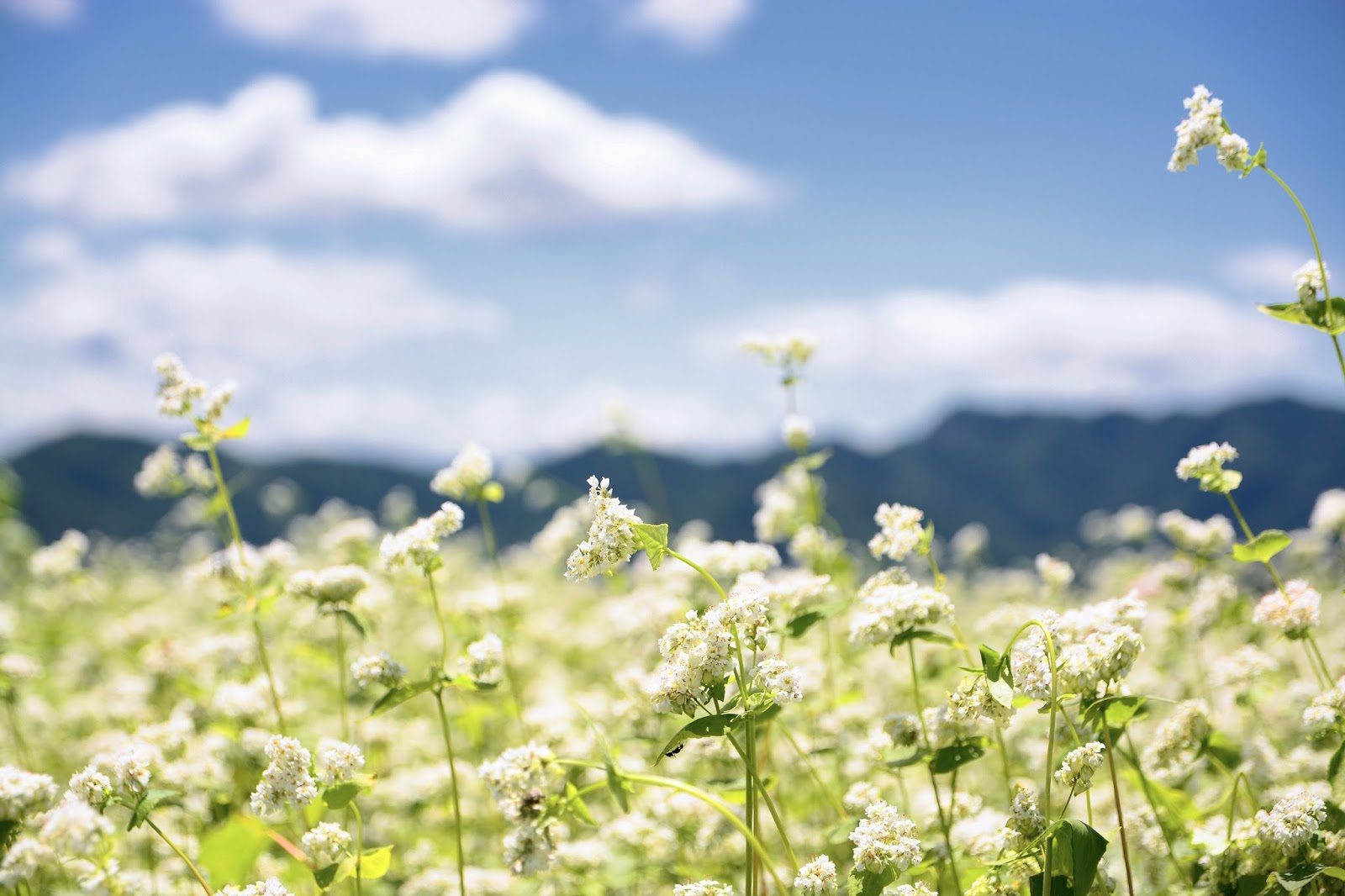 もう蕎麦の花が咲いていました。この時期になるとあたり一面、このような風景が。