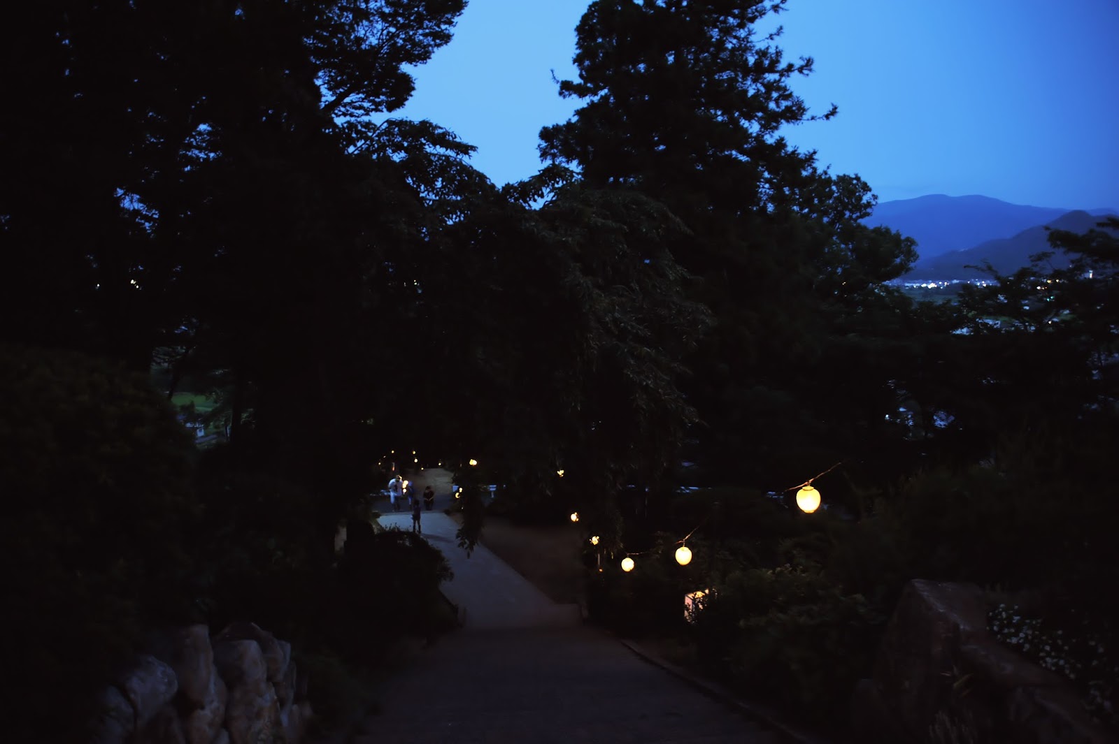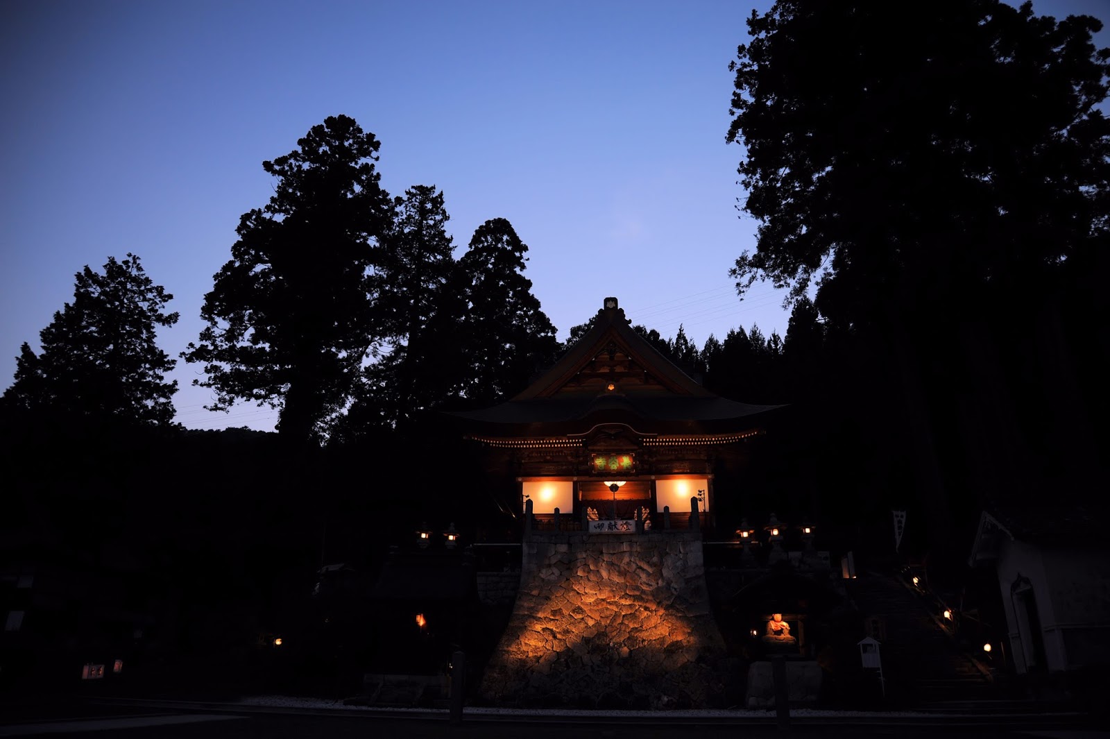 石段を登るとライトアップされた本堂。