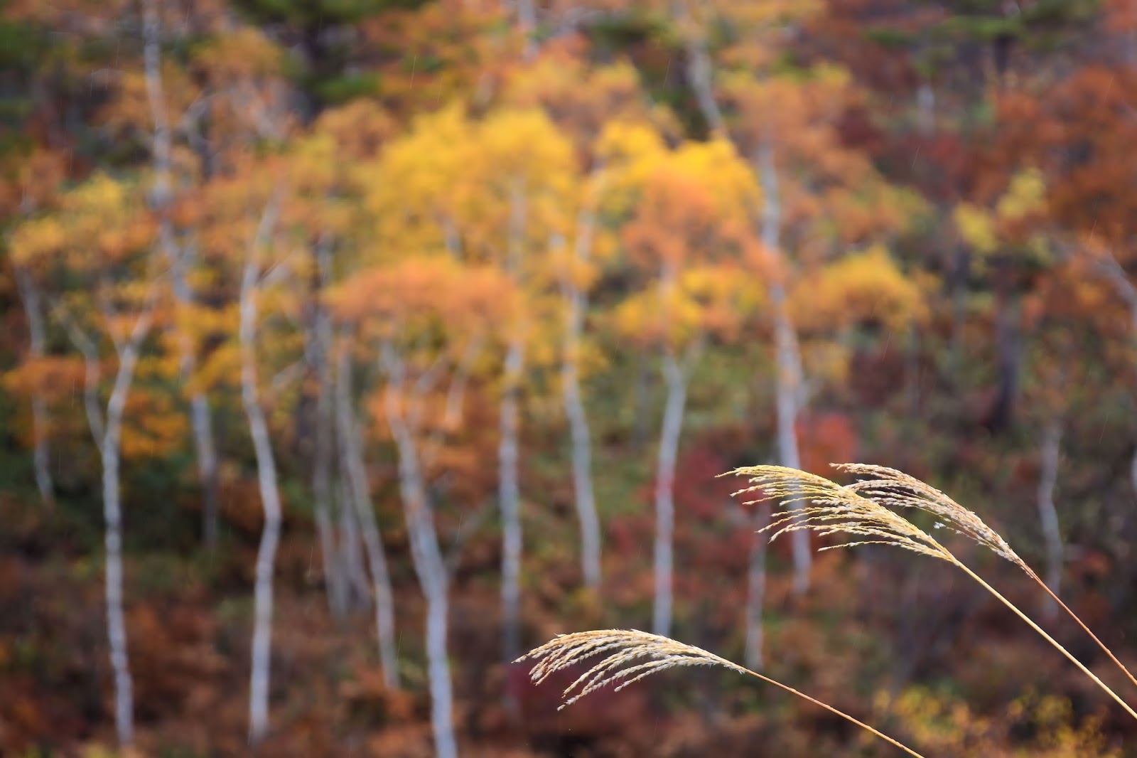 赤や黄色に彩る一面の紅葉を独り占めです。