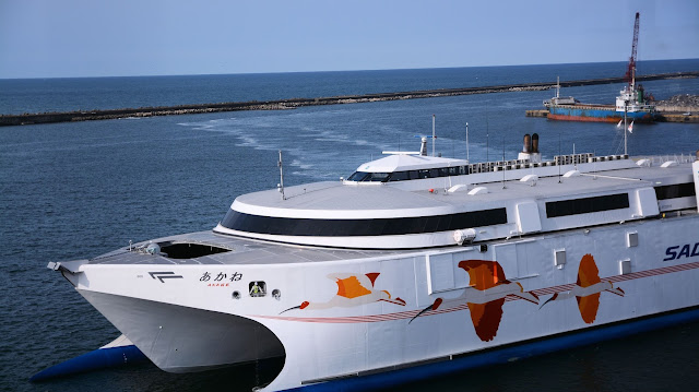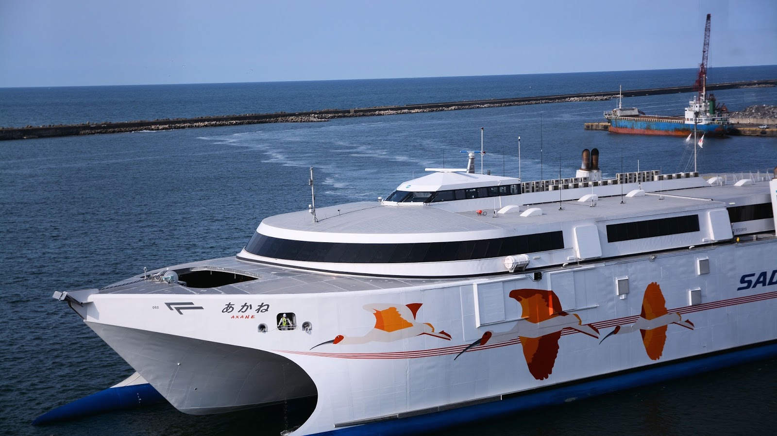 新造船の佐渡への航路を運航している「あかね」がターミナルへ。