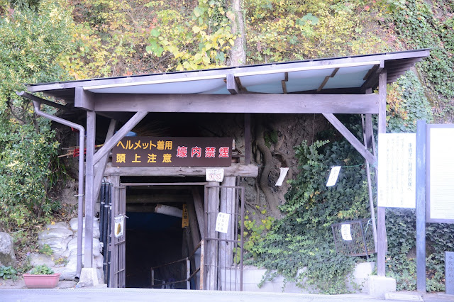象山入り口にはヘルメットの列!いよいよ地下壕へ。