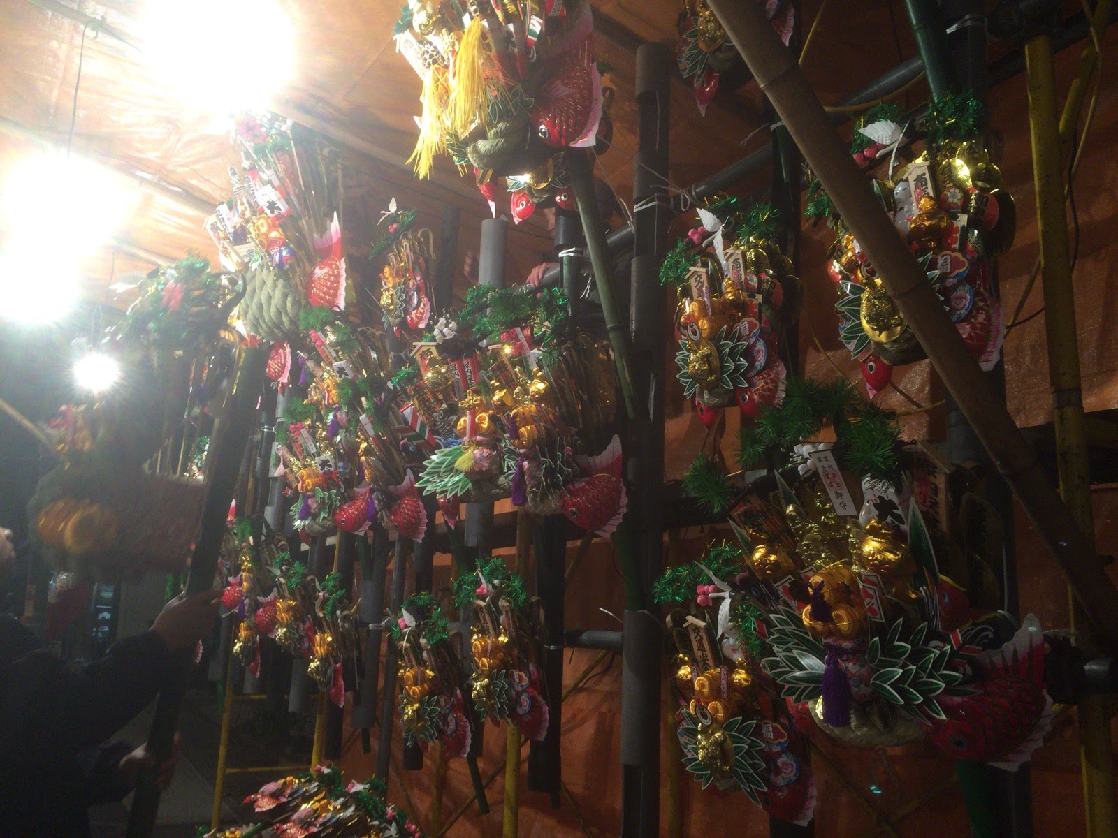 商売繁盛の熊手やダルマなどが売られて大賑わいの「宵えびす」
