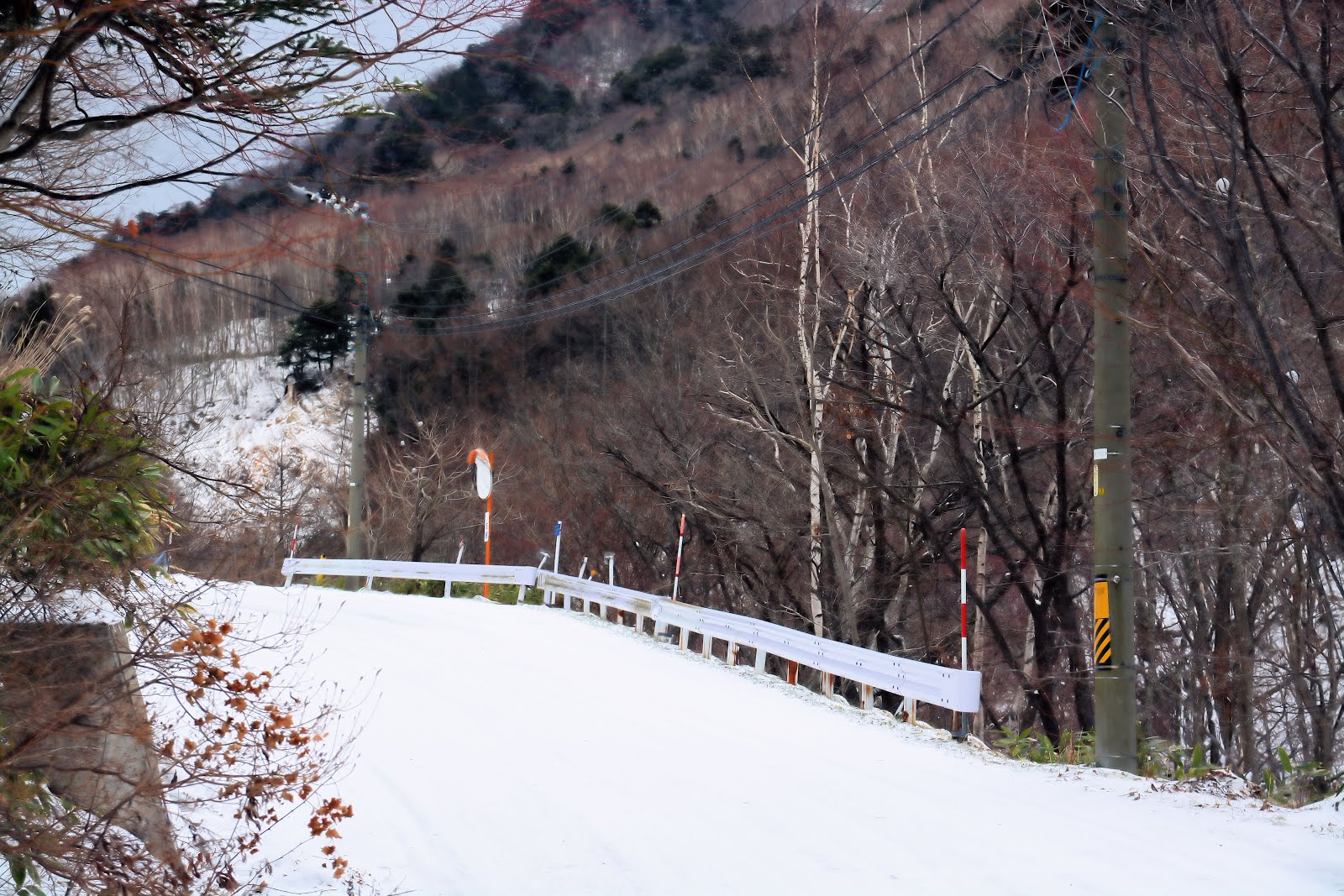 信濃川を渡り、須坂市を抜けいよいよ高山村へ。下界と異なり、カーブを曲がると圧雪状態。車で20分走っただけでこの変わり様!