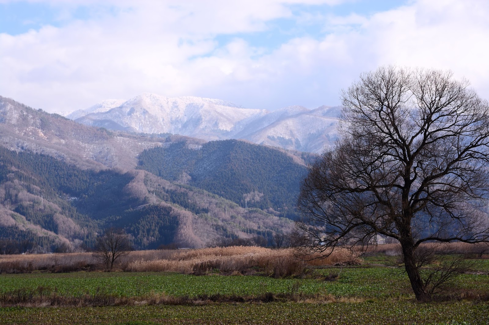高いところはさすがに白くなっていましたが、里はまだまだです。例年だとここらも真っ白になっているのですが、今年は暖冬でご覧のとおり。