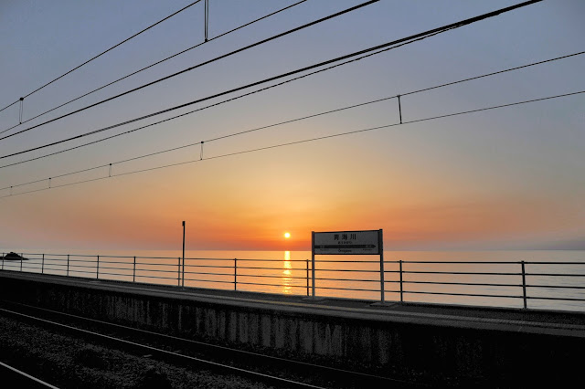 こんな海岸線沿いに線路があって、夏場は良いけど冬期の厳しさが想像できます。