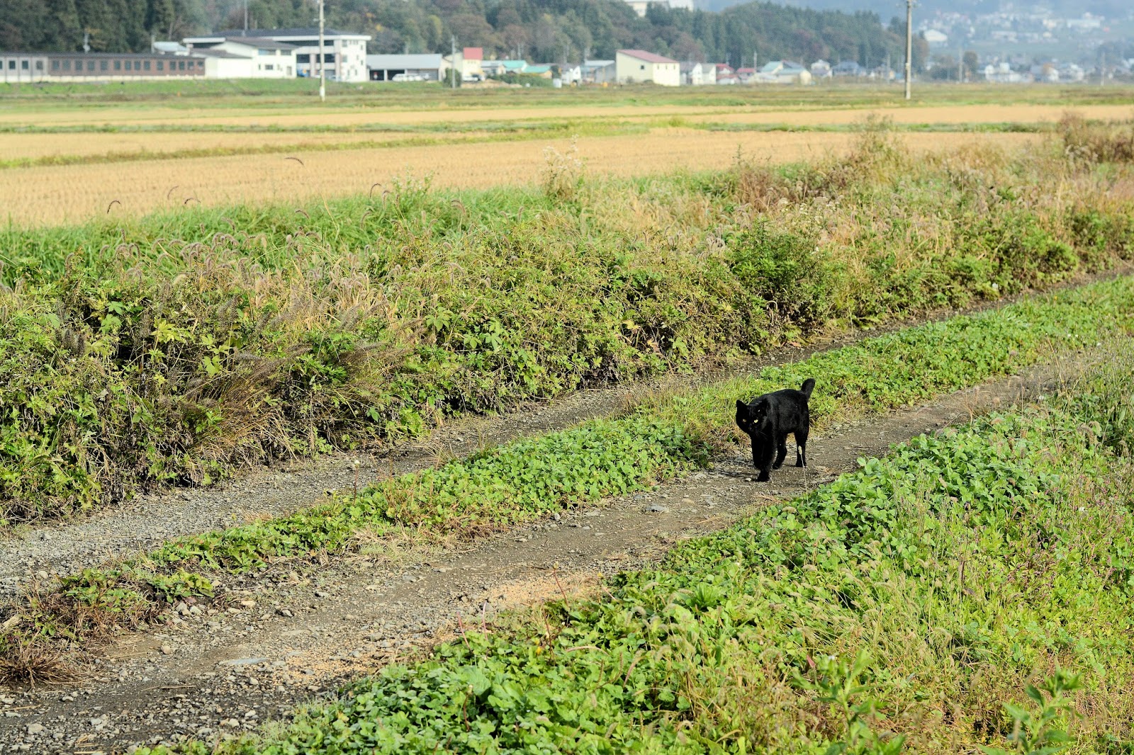 まわりの田んぼも稲刈りを終えご覧の有り様です。そろそろ定刻になろうとするその時に可愛い来訪者が。