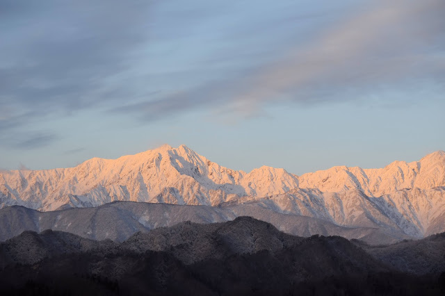 長野はイヴは小雪の降るホワイトクリスマスでしたが、前線が通過し翌日は晴れるとの予報でしたので、4時起きでいつもの小川村アルプス展望台へ。